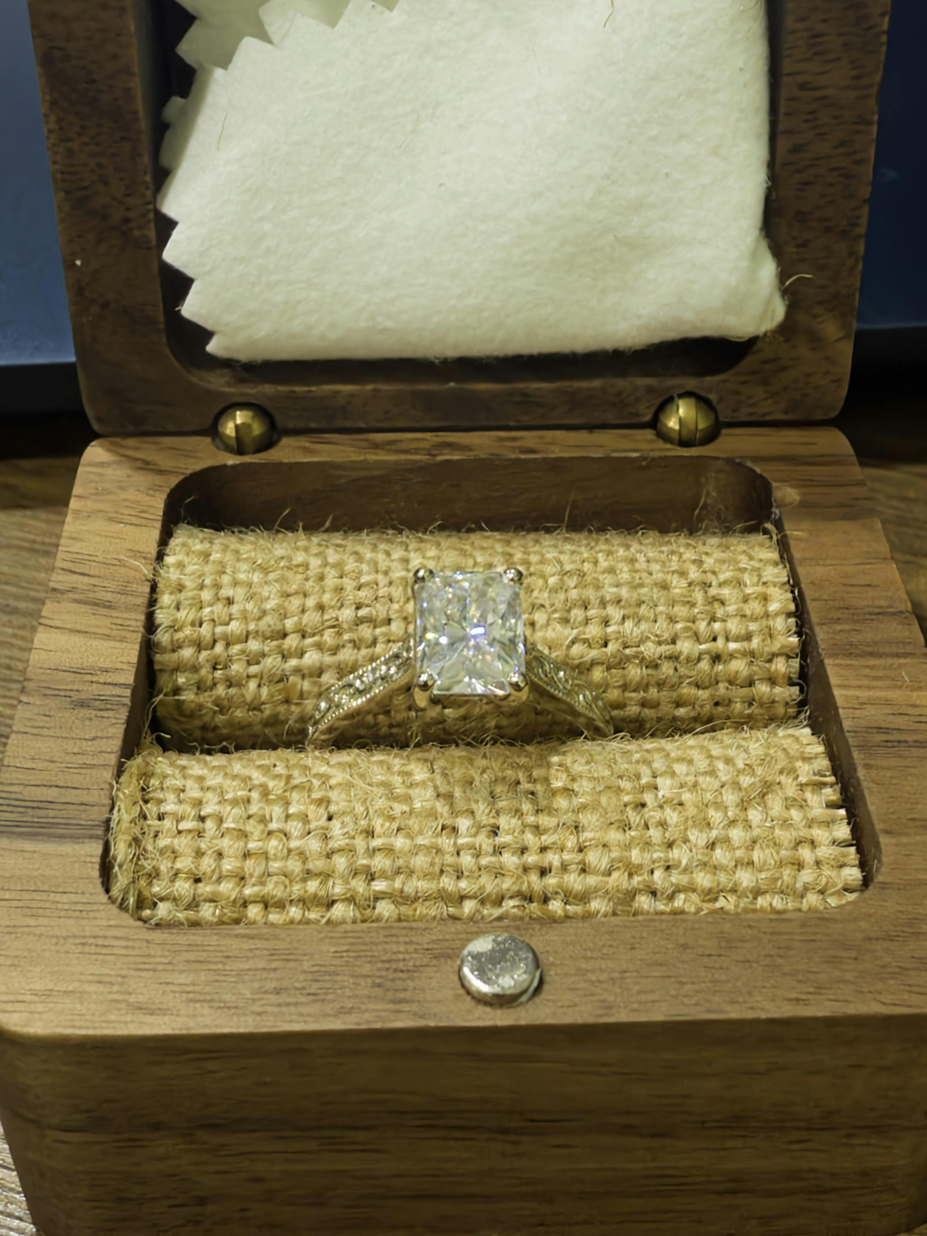 This beautiful 4 prong setting contains a 2.00ct. radiant cut moissanite. The center stone measures 8x6mm. The cathedral solitaire mounting features gorgeous vintage detailing. This listing is for the engagement ring only and does not include the matching wedding band. Color: D (colorless) Clarity: VVS1 -this ring comes with a grading certificate. The ring is available in sterling silver and 14k white, yellow, or rose gold. This ring comes with a grading certificate.